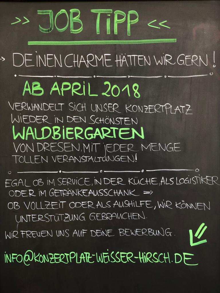 Wir sind ein junges Team auf der Suche nach Unterstützung für die Gastronomie auf dem Konzertplatz Weißer Hirsch.